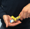 - Do not remove the blue safety release from the auto-injector. It should be left on until the device is going to be used.