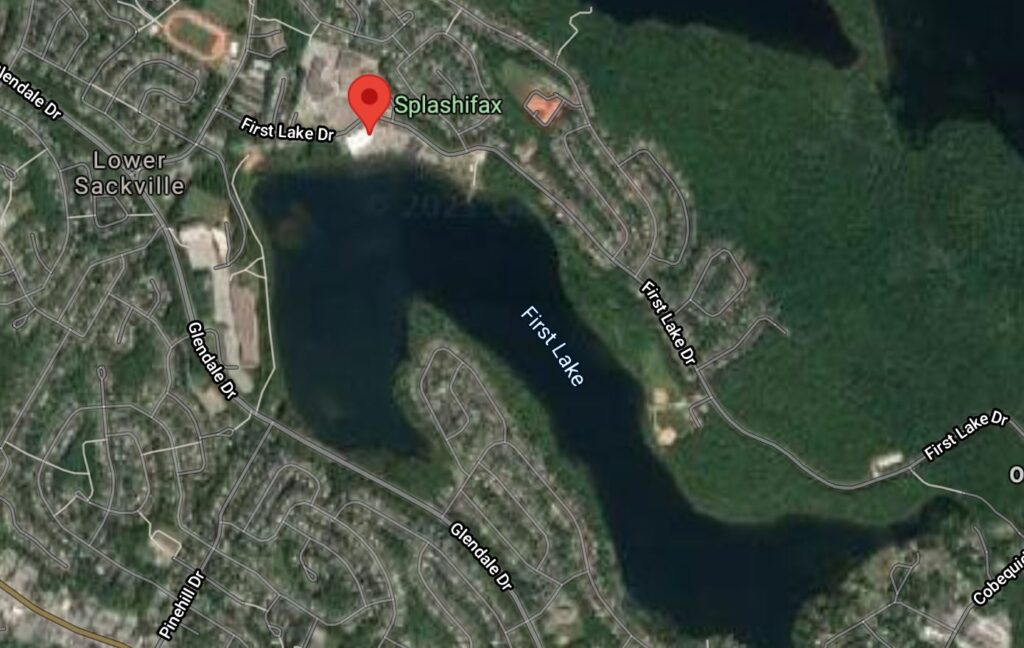 If you search for it on Google Earth, it shows up next to First Lake in Lower Sackville.