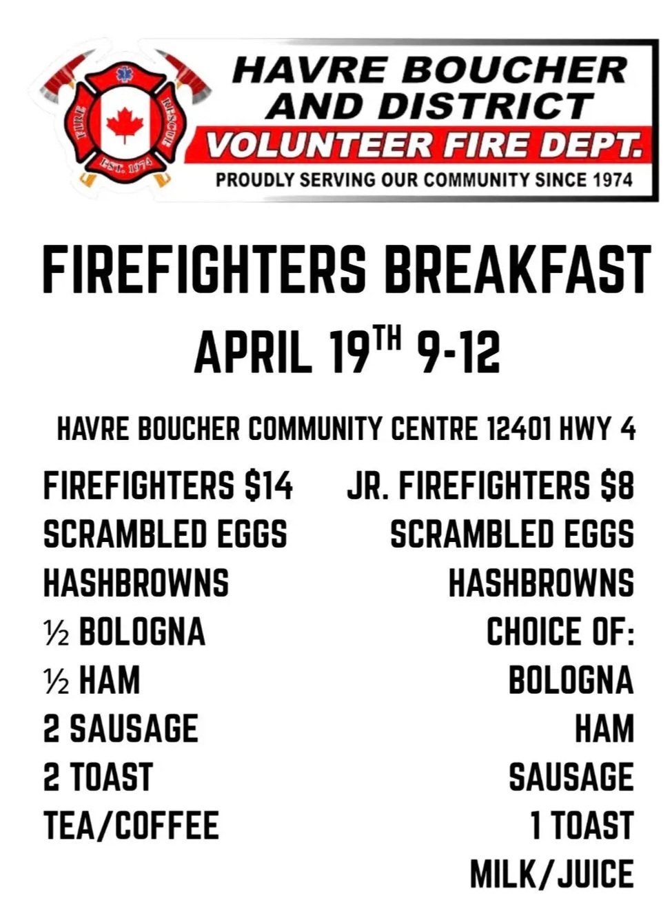 Havre Boucher Fire Fighters Breakfast