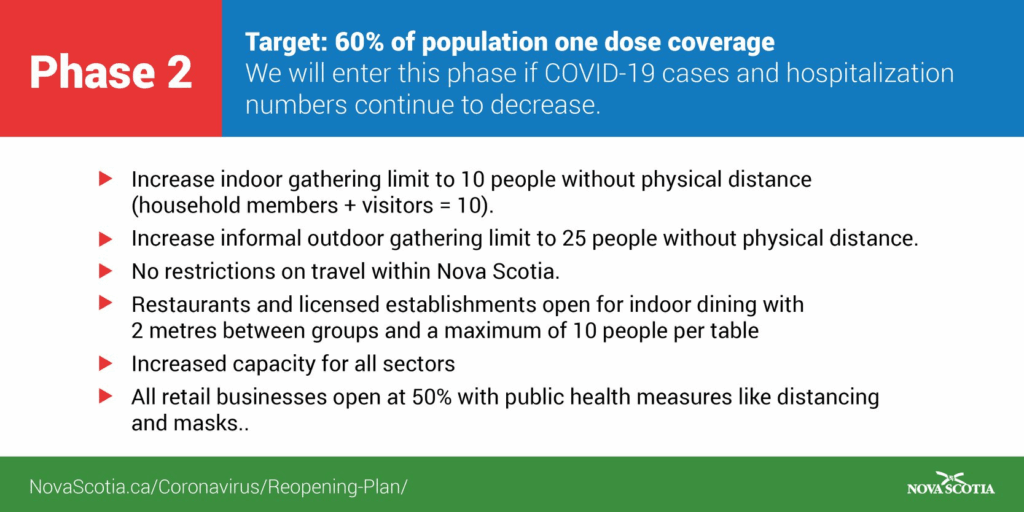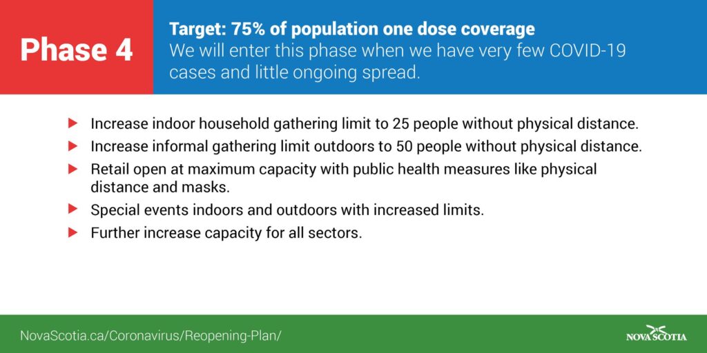Each reopening phase will last 2-4 weeks and is based on vaccination rates, COVID-19 cases and hospitalizations.