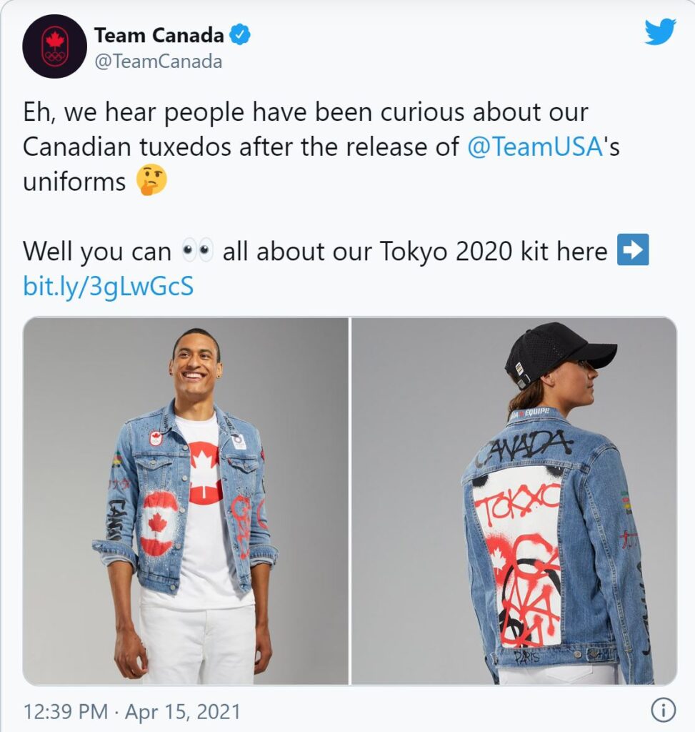 Canada’s athletes will be wearing….a Canadian Tuxedo????